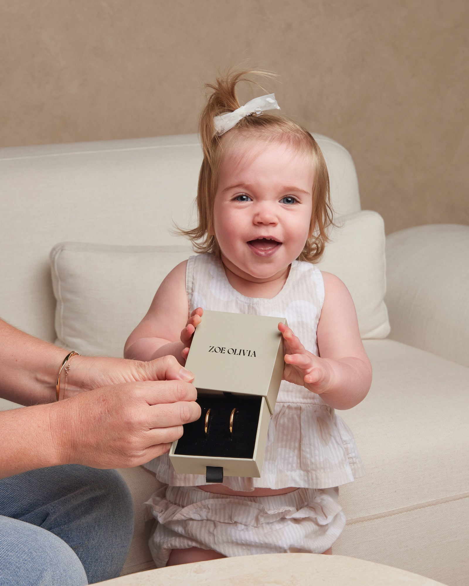 Perfect for gifting: certain Zoe Olivia pieces arrive beautifully presented in our signature soft-touch box, designed with understated elegance and a coastal-inspired neutral palette. Nestled in protective cushioning and finished with a sleek black ribbon tab, your jewellery is not only secure but gift-ready straight from the box - whether it’s a special occasion or a well-deserved treat for yourself.