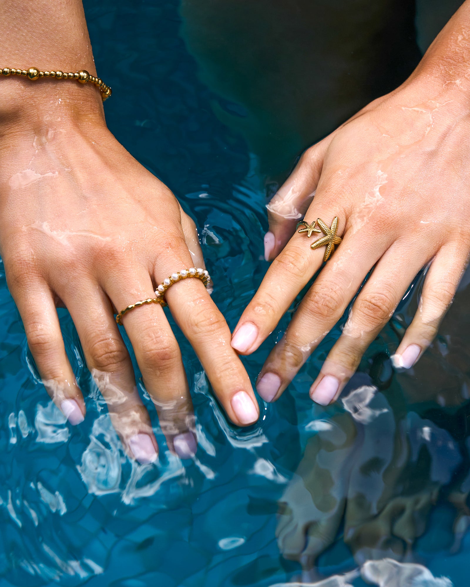 Crafted from durable stainless steel and finished with a premium PVD coating. Designed for real life, these pieces can handle ocean swims, showers, and everything in between, keeping their shine no matter where your day takes you.
